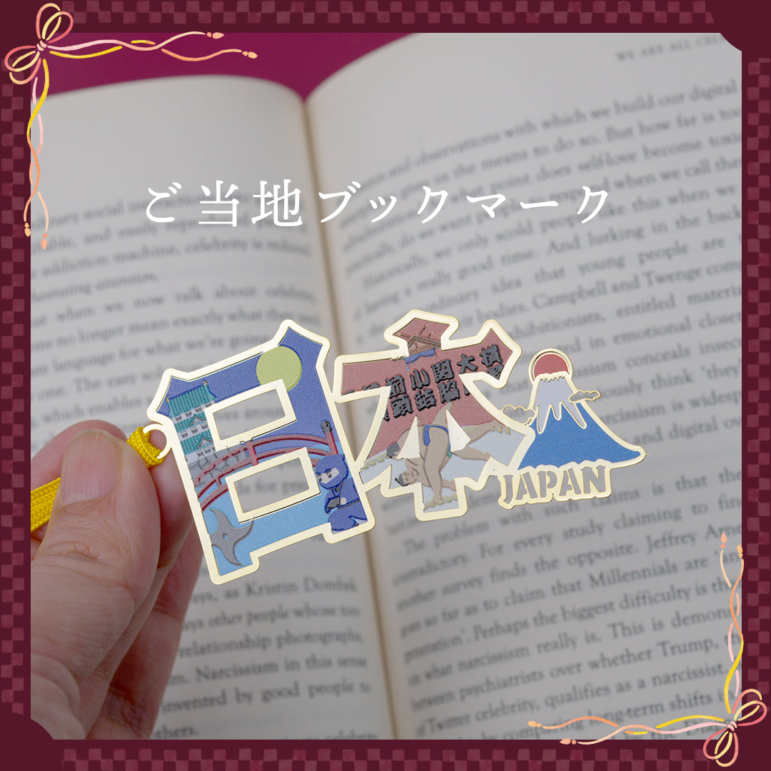 人気の観光スポット等を文字の中にデザインしたカラフルなブックマークです。