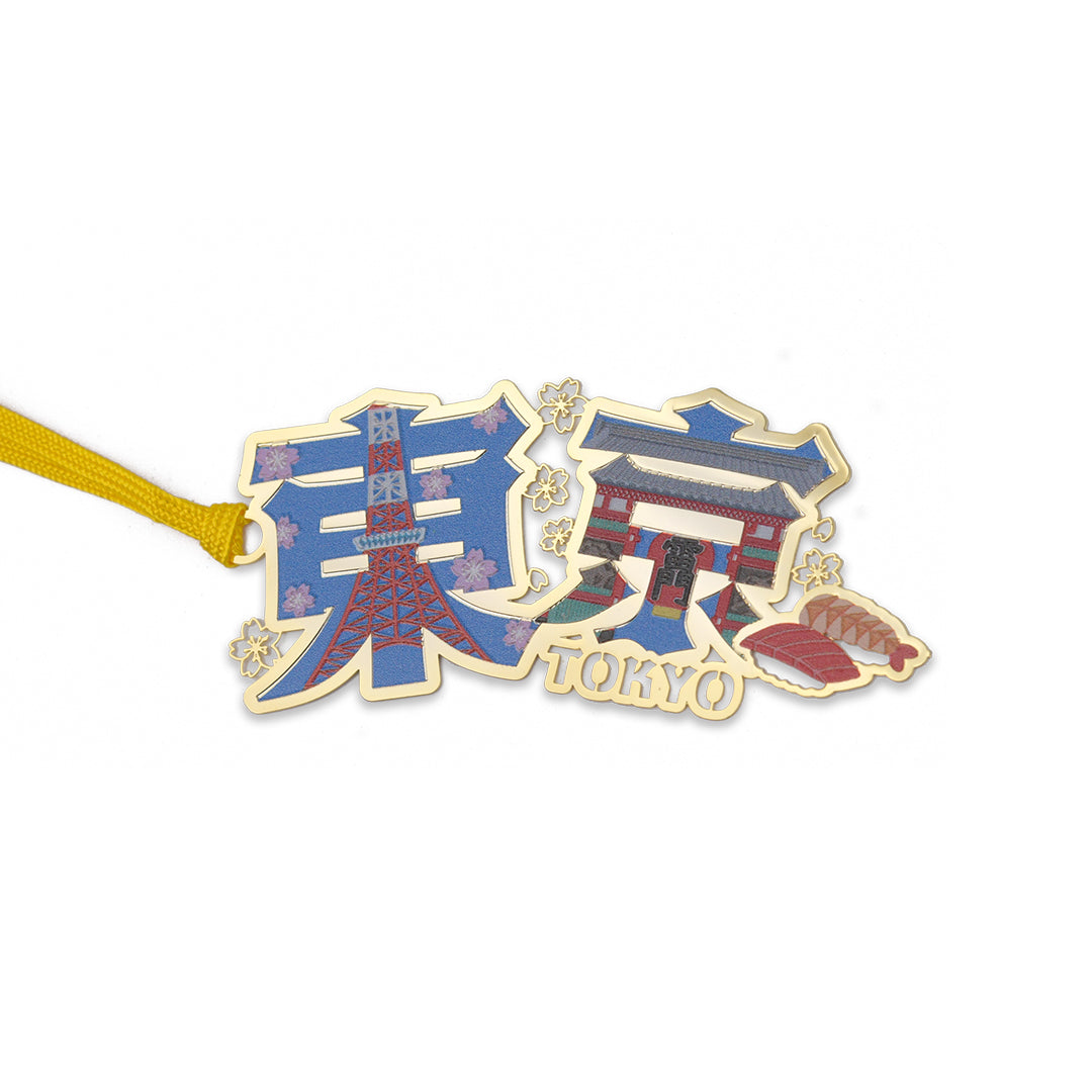 東京で人気の観光スポットやグルメを文字の中にデザインしたカラフルなブックマークです。