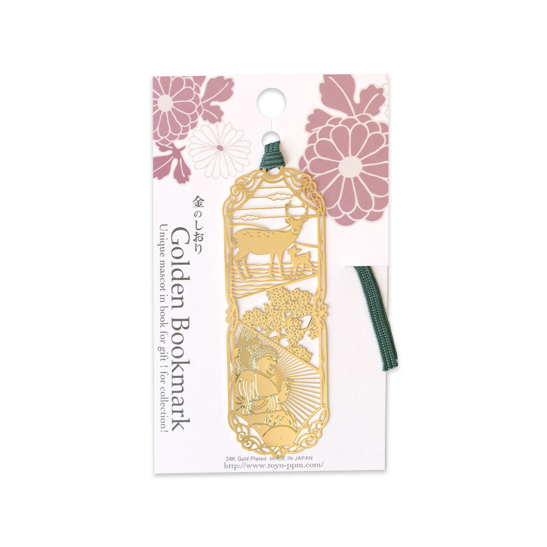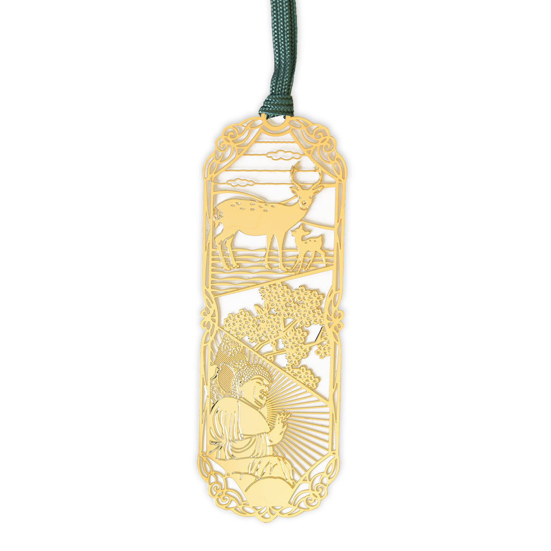 金色の輝きと繊細なデザインが美しいブックマークです。