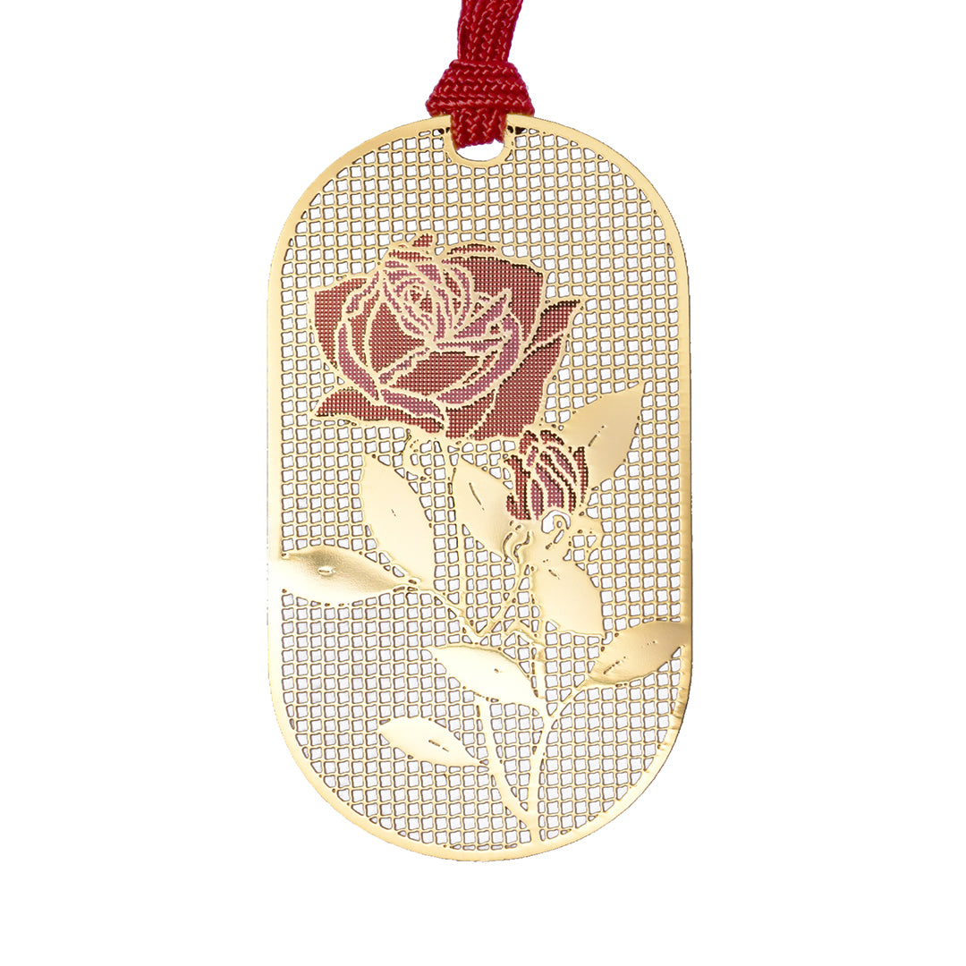 フォトエッチングにより、繊細なデザインまでも精緻に再現されたブックマークです。