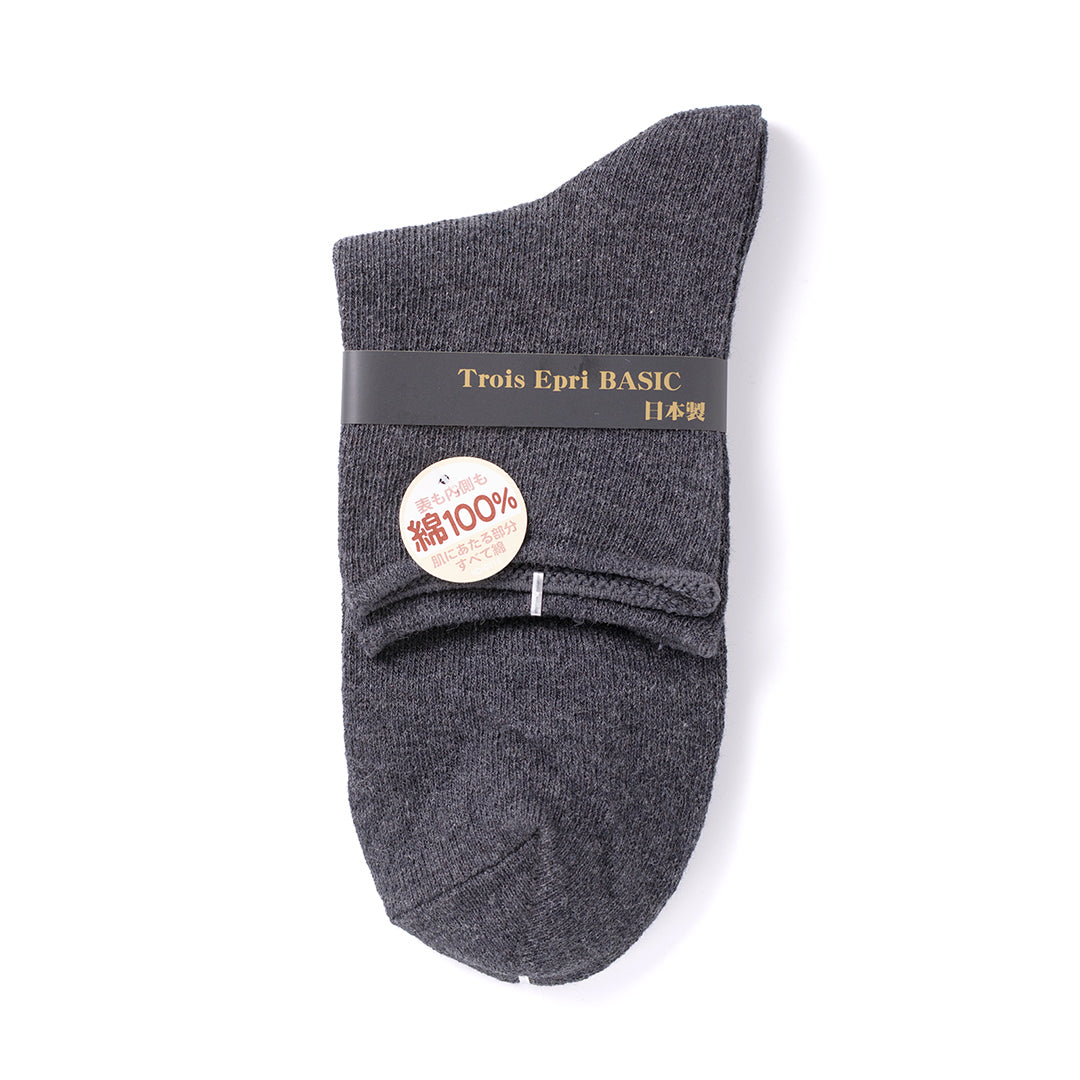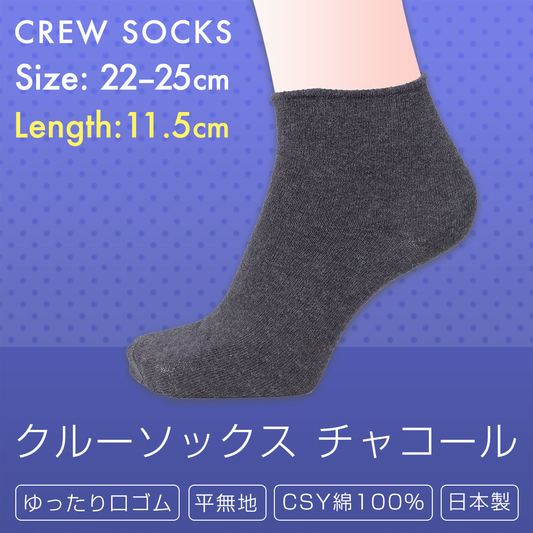 クルーソックス 平無地 CSY綿100% ゆったり口ゴム 日本製 チャコール