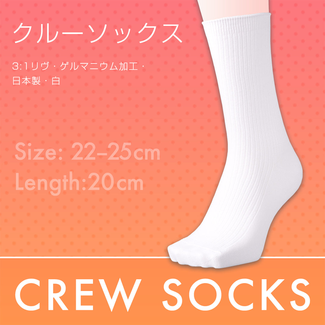 クルーソックス 3:1リヴ ゲルマニウム加工 日本製 白
