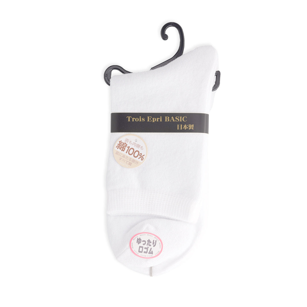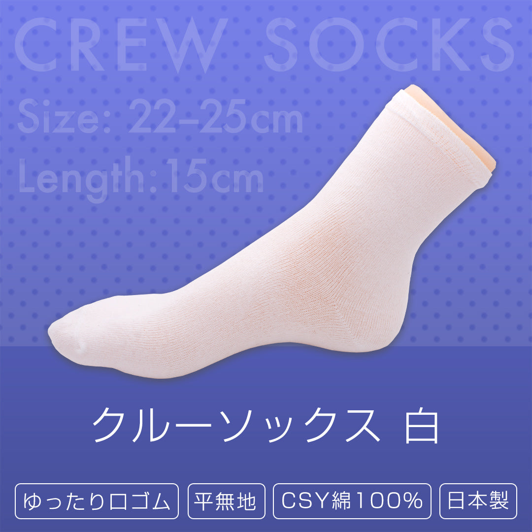 クルーソックス ゆったり口ゴム 平無地 CSY綿100% 日本製 白