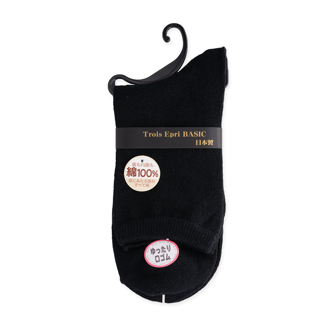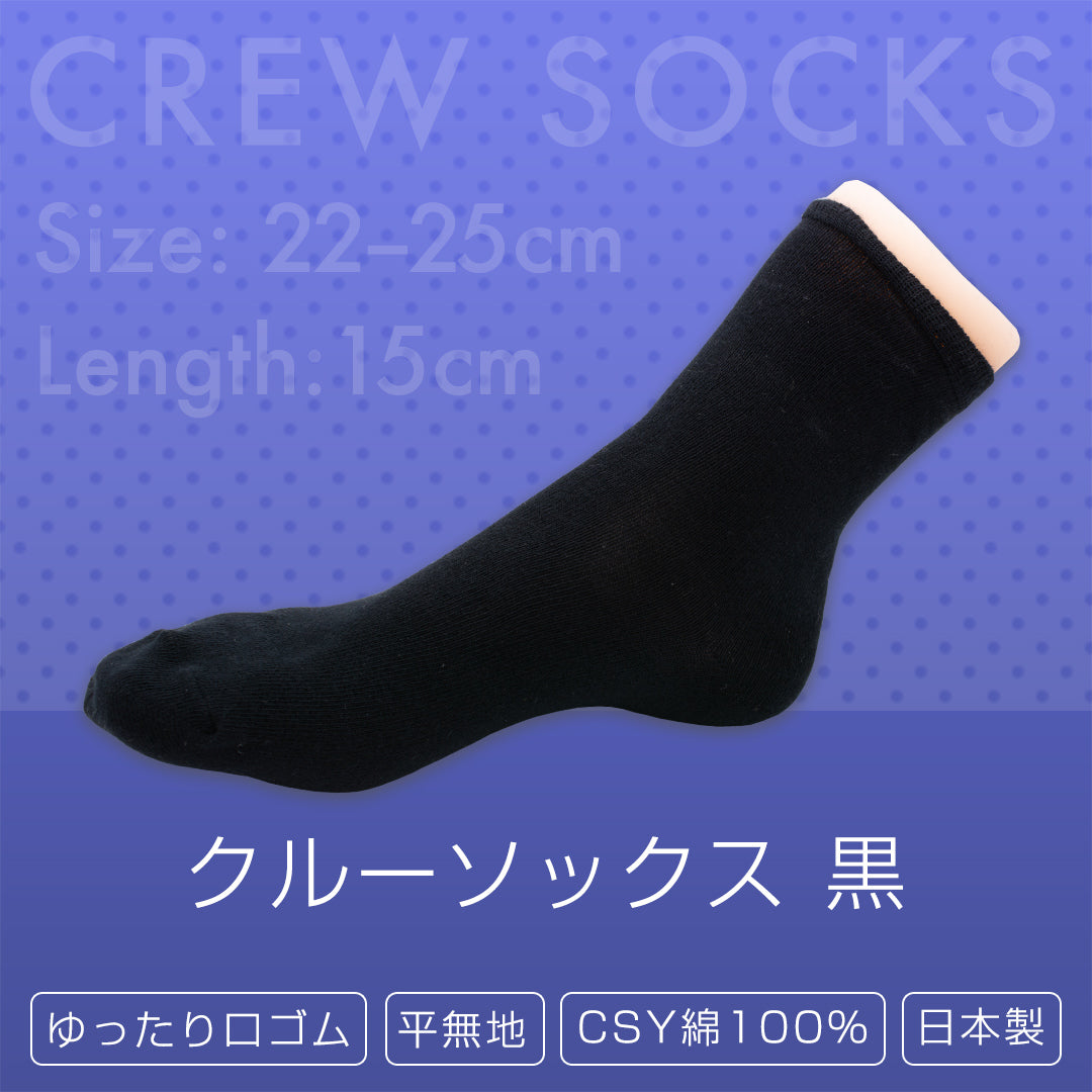 クルーソックス ゆったり口ゴム 平無地 CSY綿100% 日本製 黒