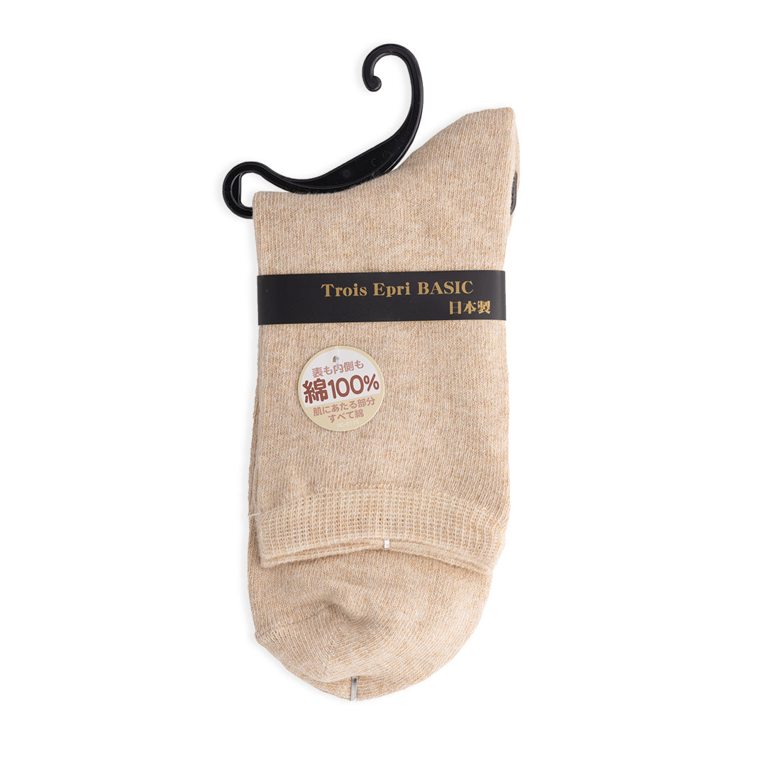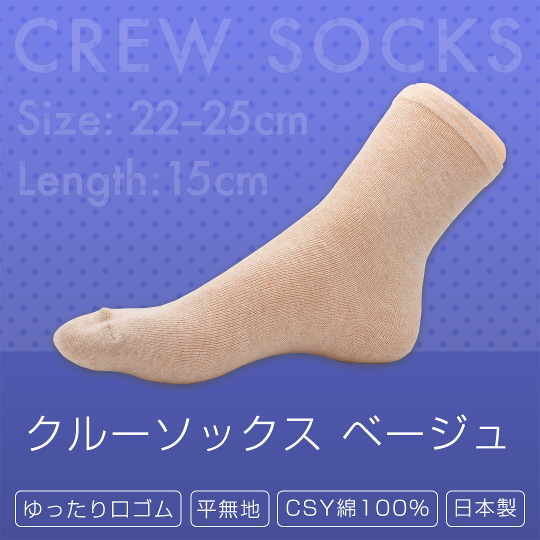 クルーソックス ゆったり口ゴム 平無地 CSY綿100% 日本製 ベージュ