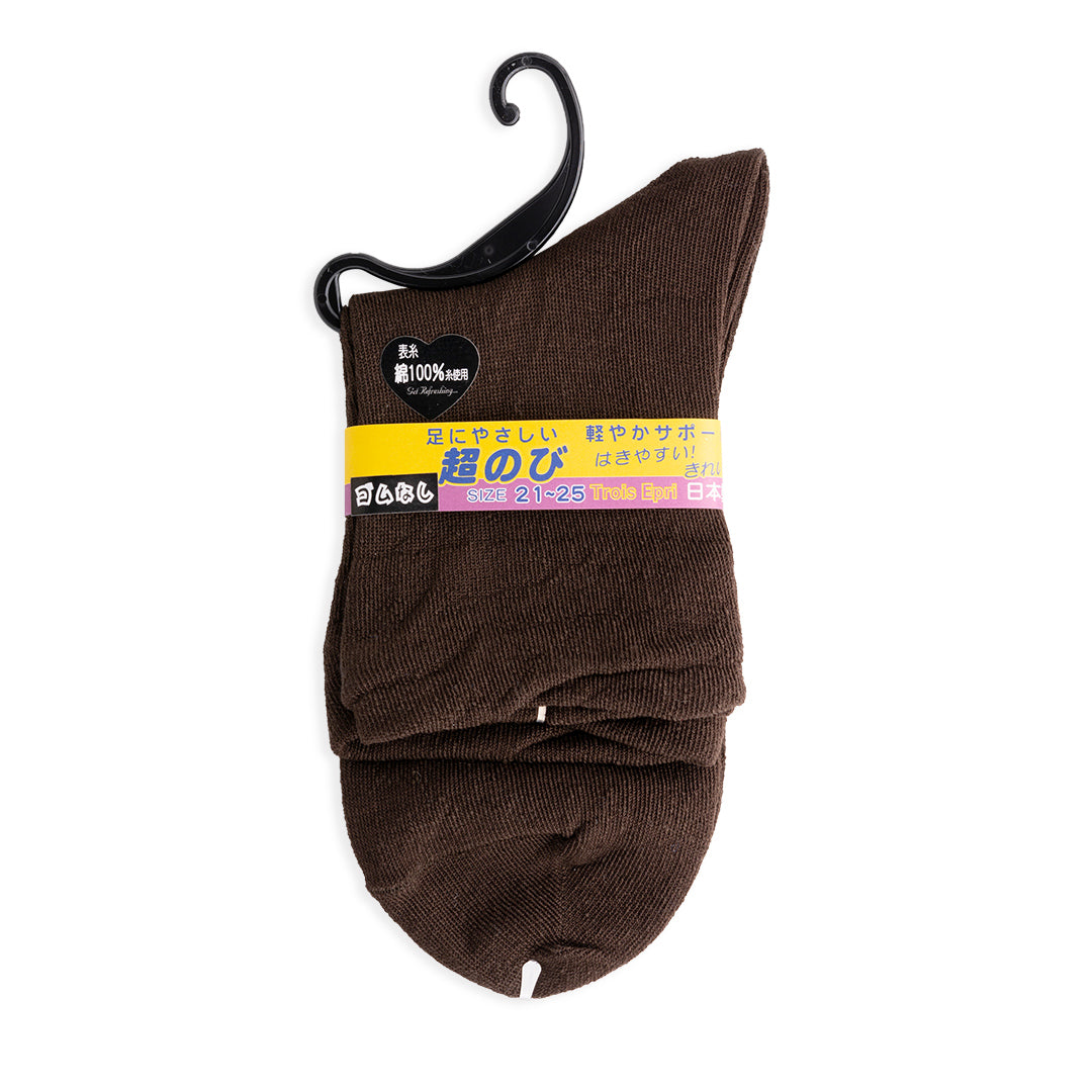 クルーソックス 超のびシリーズ ゴムなし深すくい 表糸綿100% 日本製 こげ茶