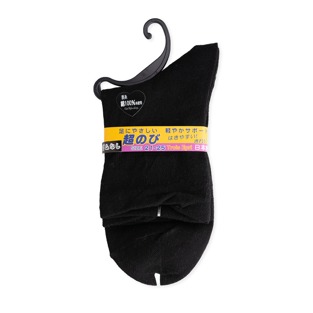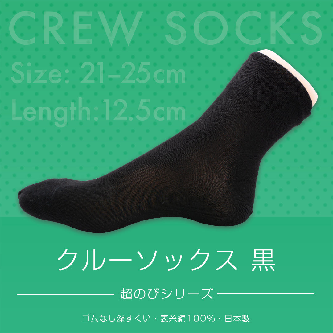 クルーソックス 超のびシリーズ ゴムなし深すくい 表糸綿100% 日本製 黒