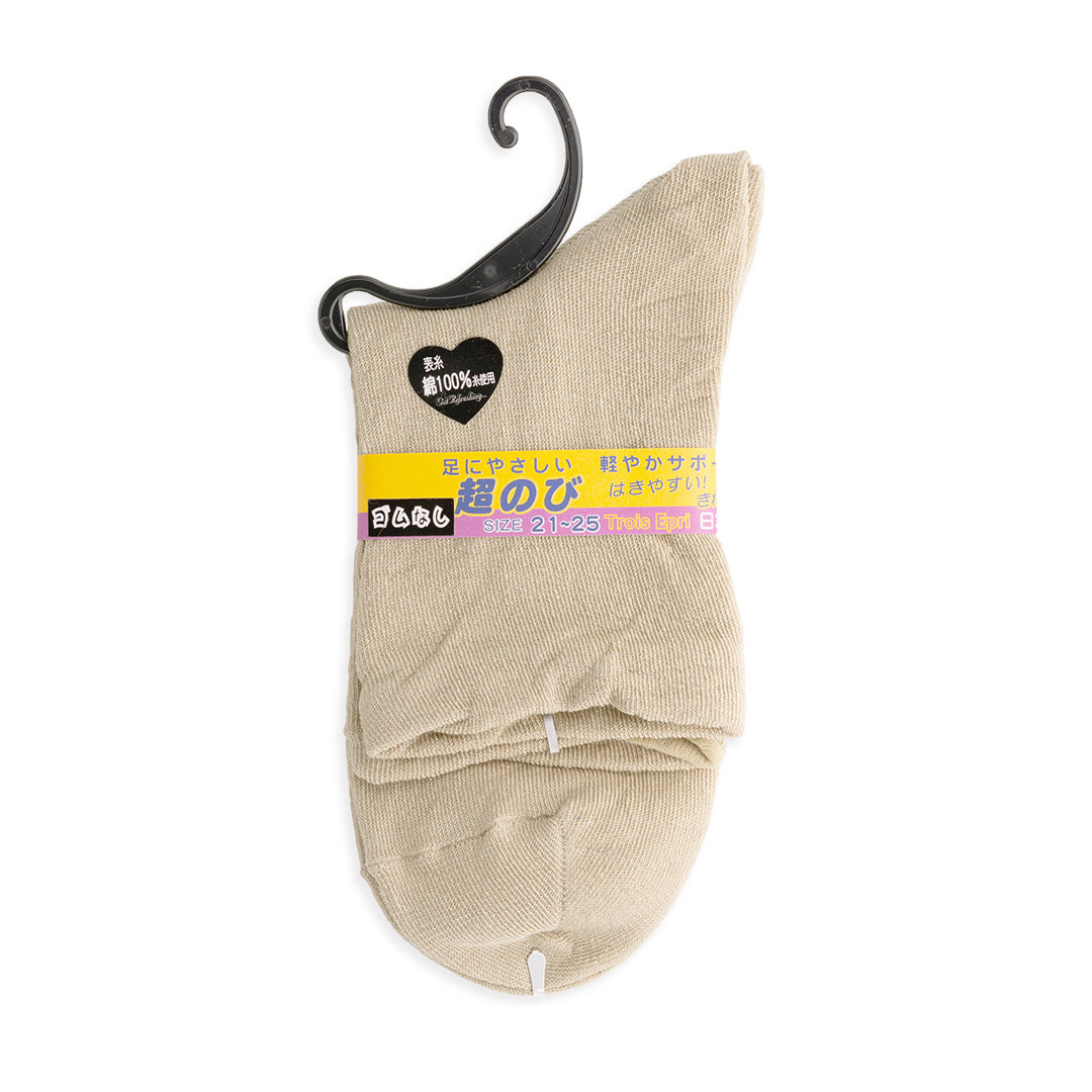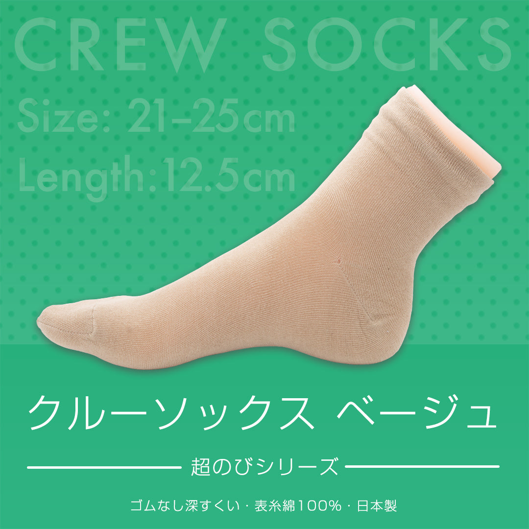 クルーソックス 超のびシリーズ ゴムなし深すくい 表糸綿100% 日本製 ベージュ