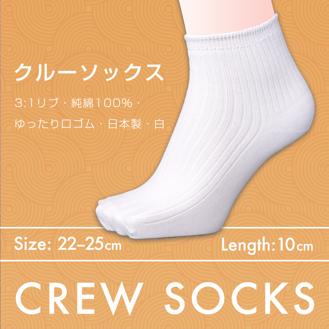 クルーソックス 3:1リブ 純綿100% ゆったり口ゴム 日本製 白