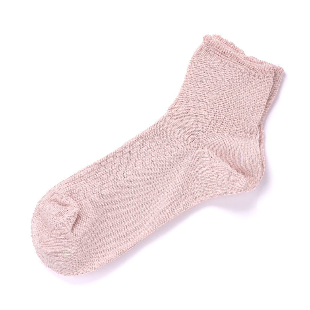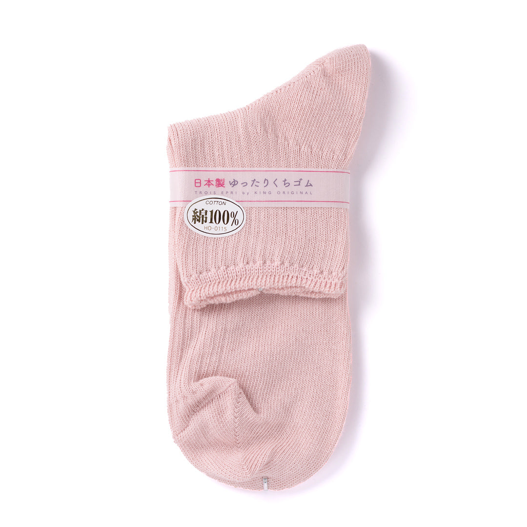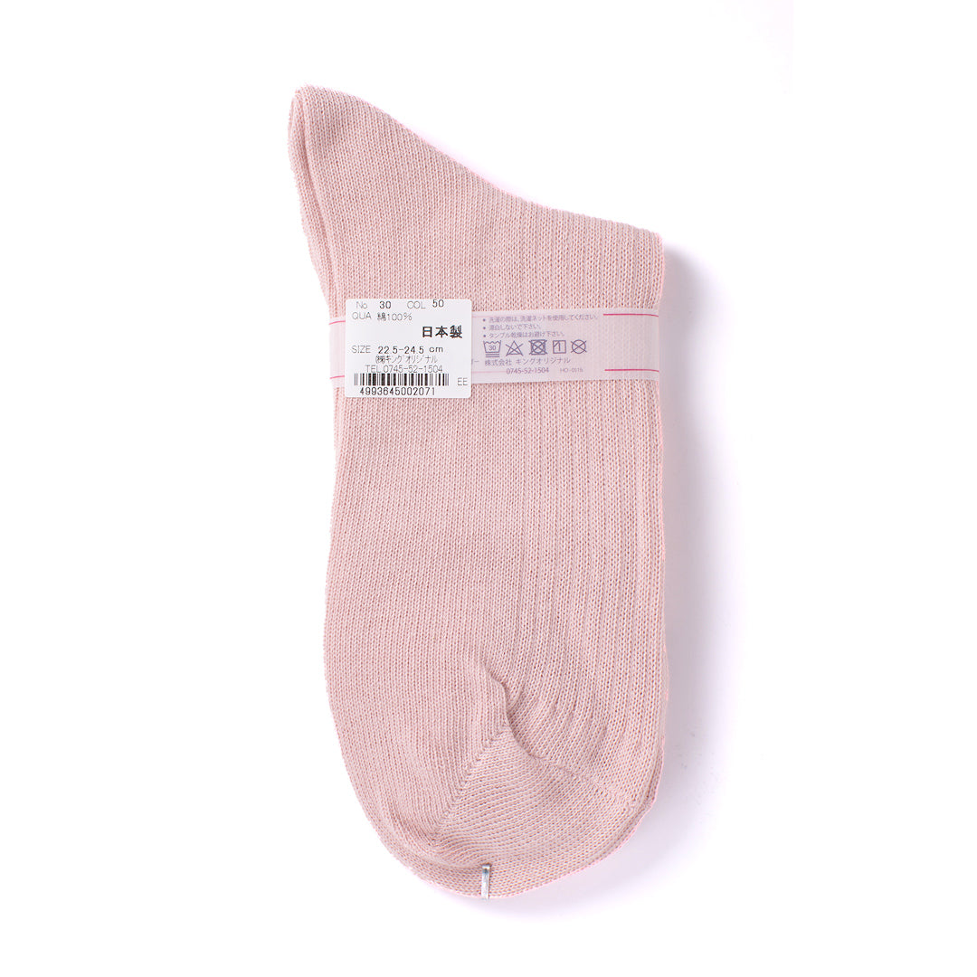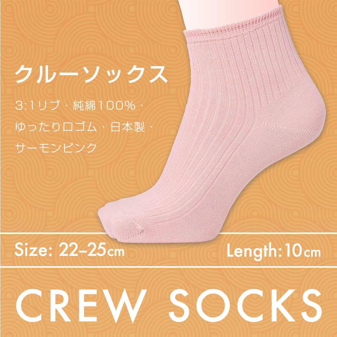 クルーソックス 3:1リブ 純綿100% ゆったり口ゴム 日本製 サーモンピンク