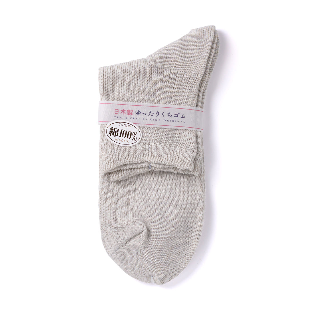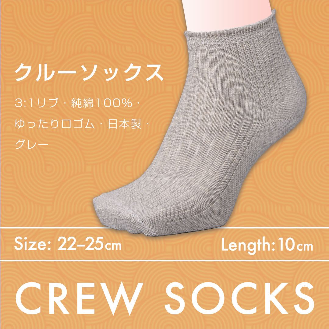 クルーソックス 3:1リブ 純綿100% ゆったり口ゴム 日本製 グレー