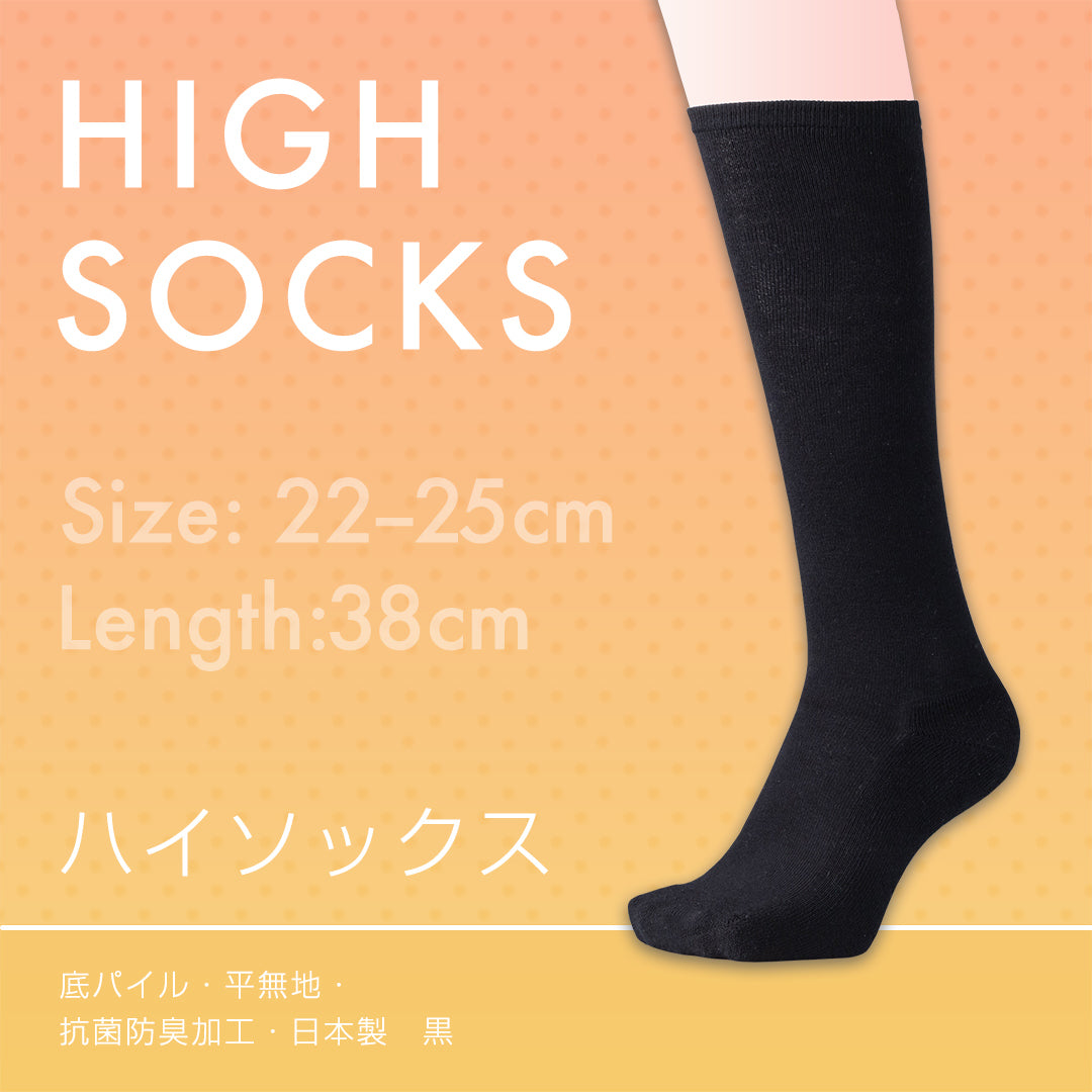 ハイソックス 底パイル 平無地 抗菌防臭加工 日本製 黒