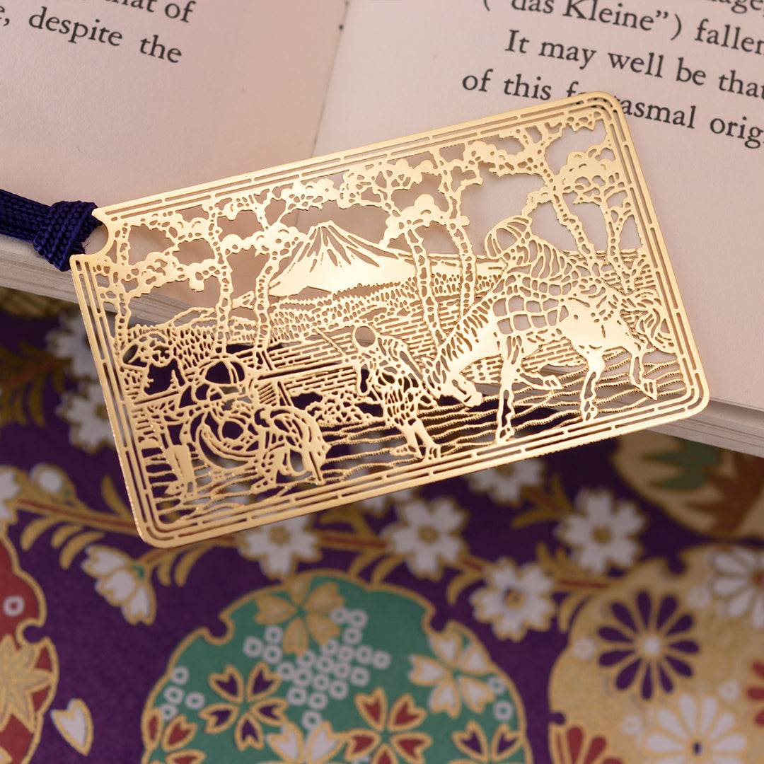 金色の輝きと繊細なデザインが美しいブックマークです。