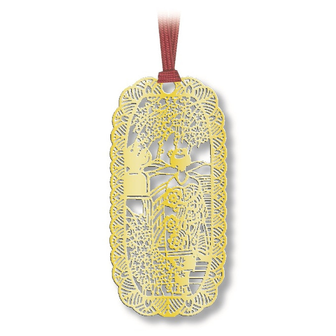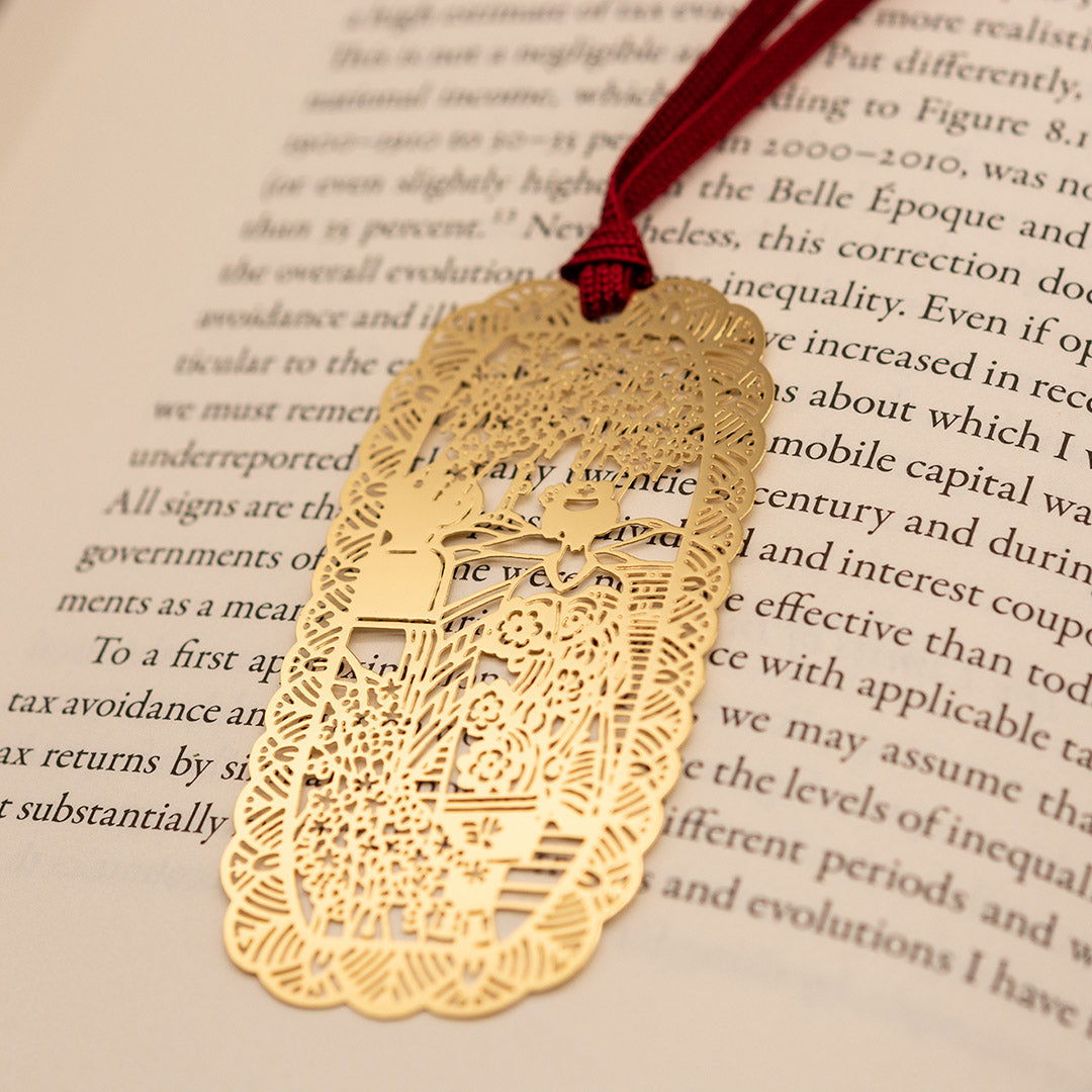 金色の輝きと繊細なデザインが美しいブックマークです。