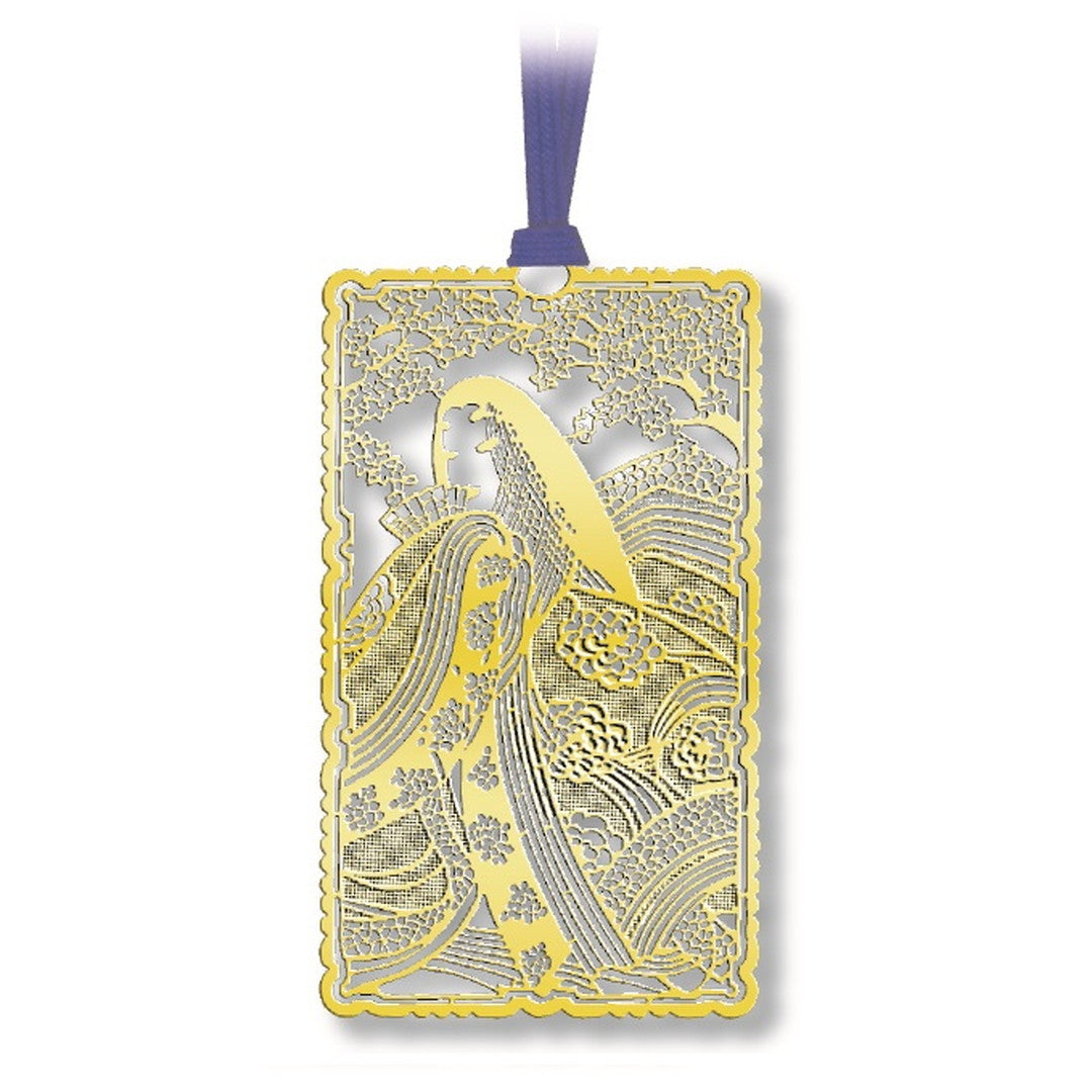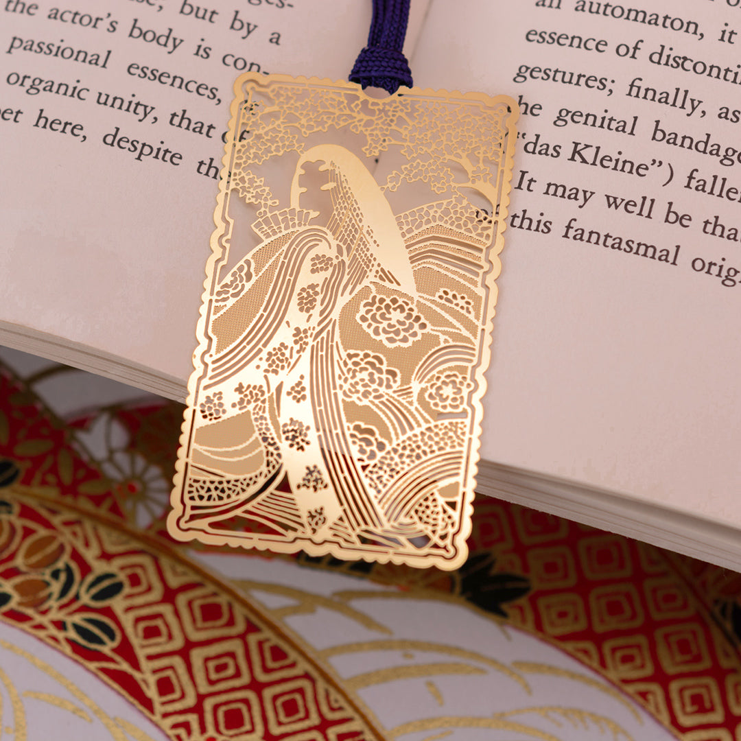 金色の輝きと繊細なデザインが美しいブックマークです。