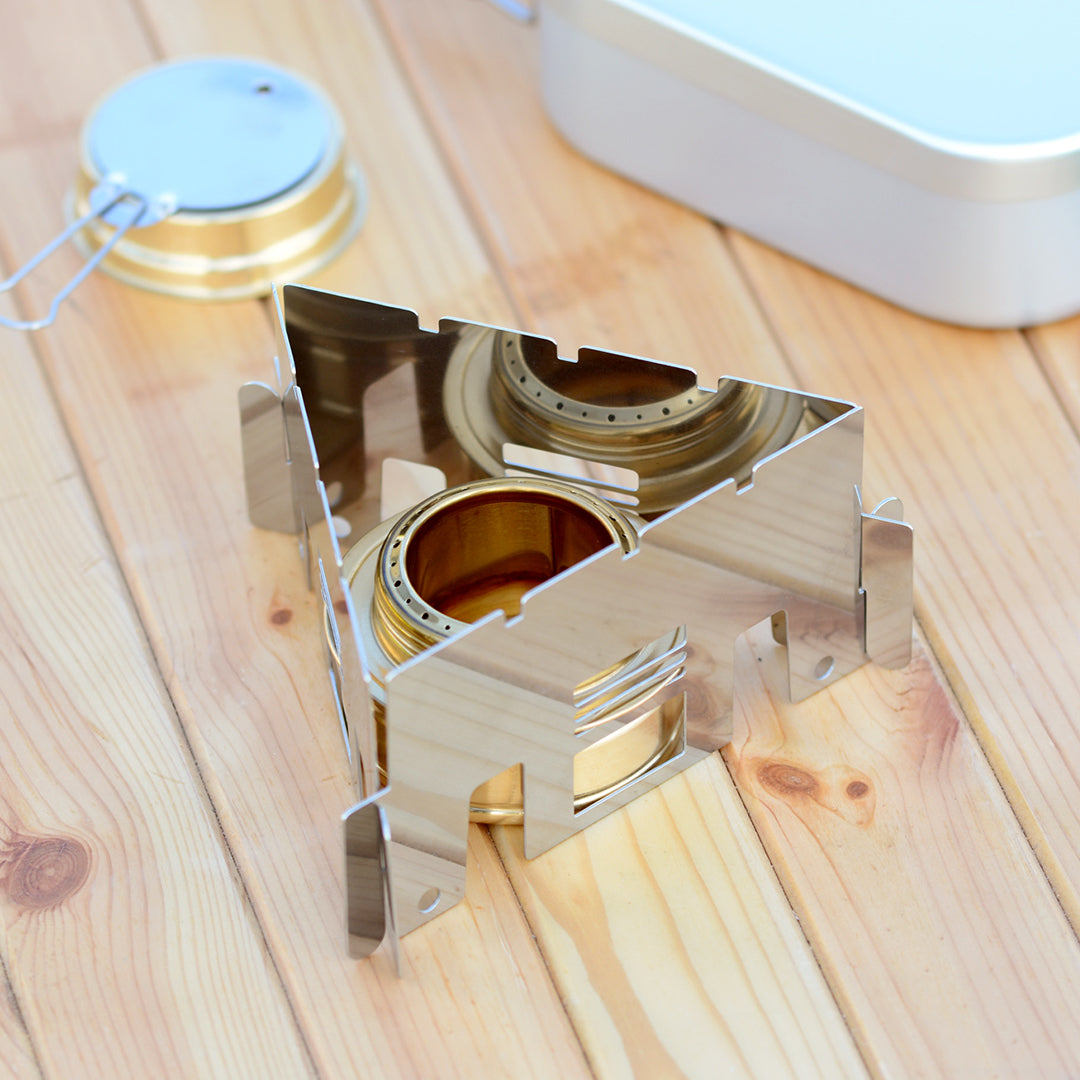 アルコールランプを中に入れて使用すると、簡単に屋外で調理が楽しめるバーナースタンドです。