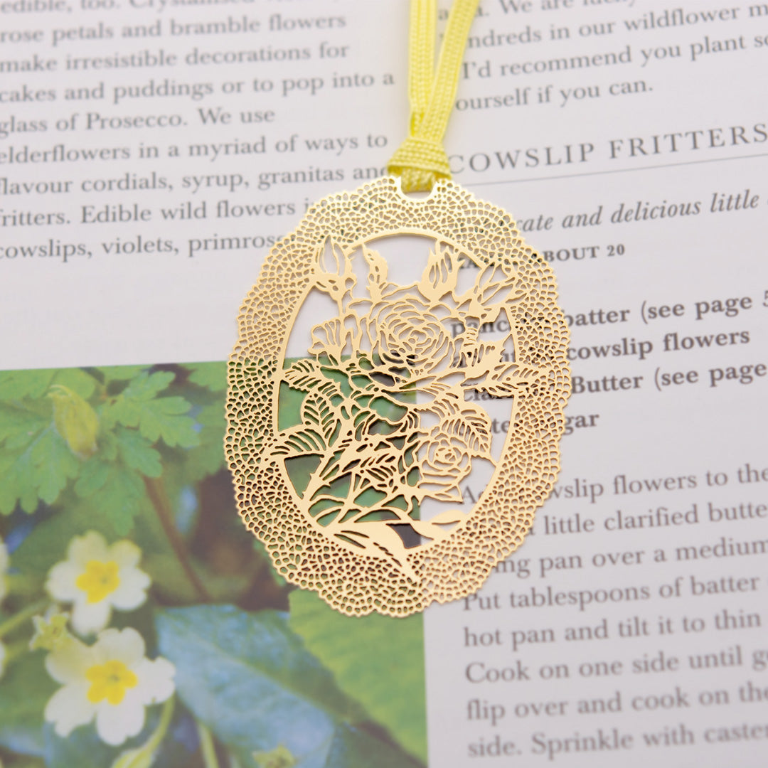 フォトエッチングにより、繊細なデザインまでも精緻に再現されたブックマークです。
