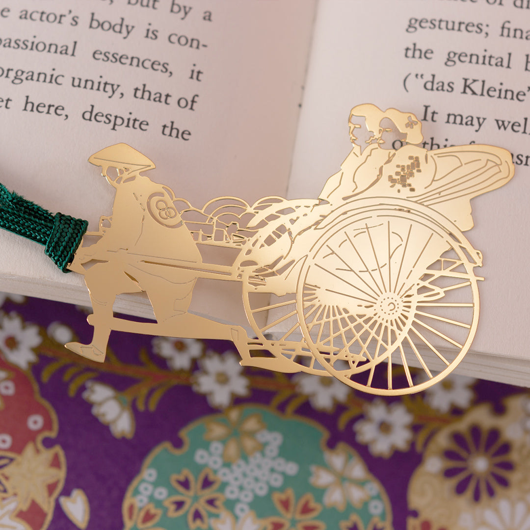 金色の輝きと繊細なデザインが美しいブックマークです。