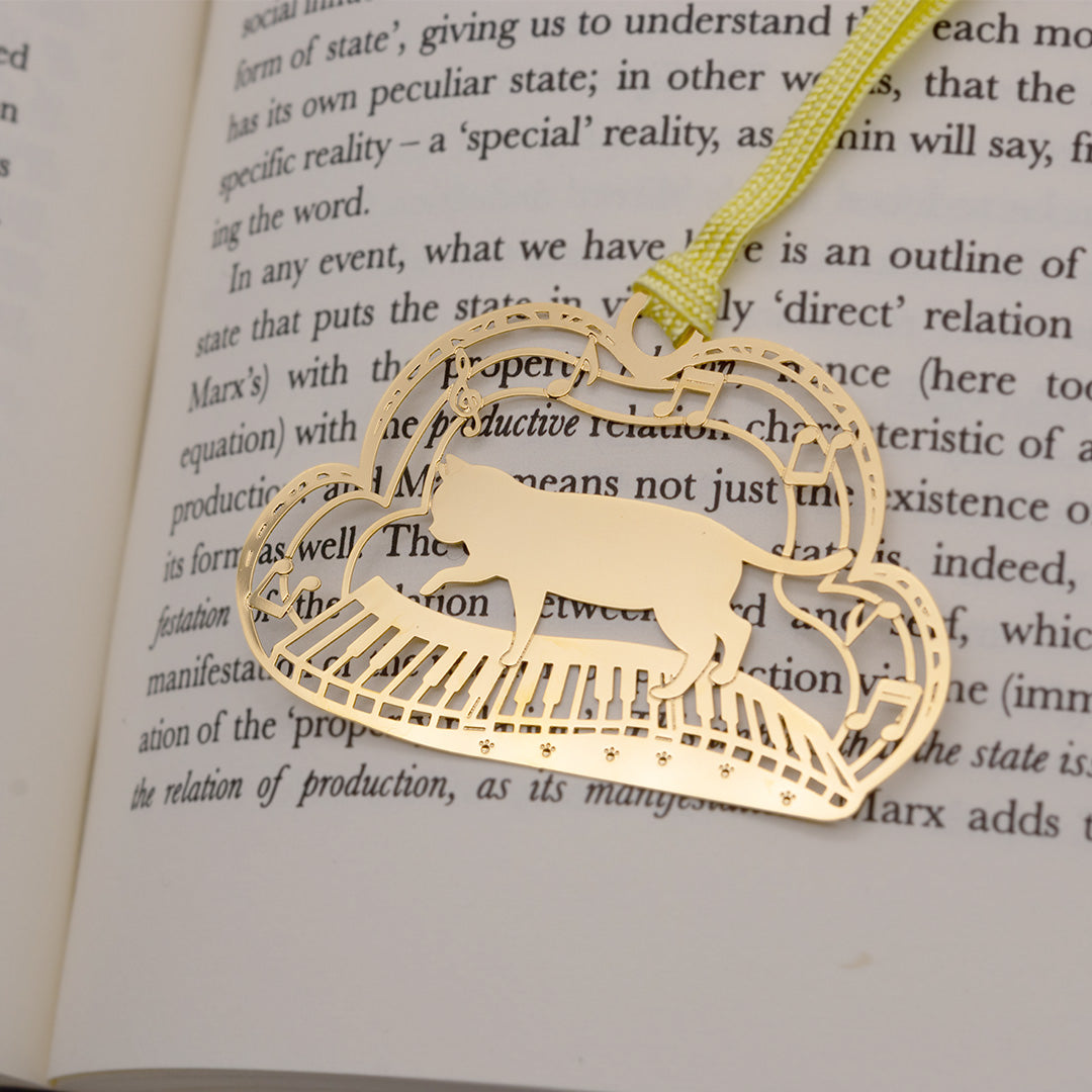 猫と楽器が組み合わさったオシャレなブックマークです。