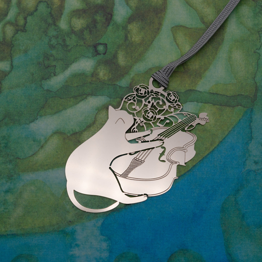 猫と楽器が組み合わさったオシャレなブックマークです。