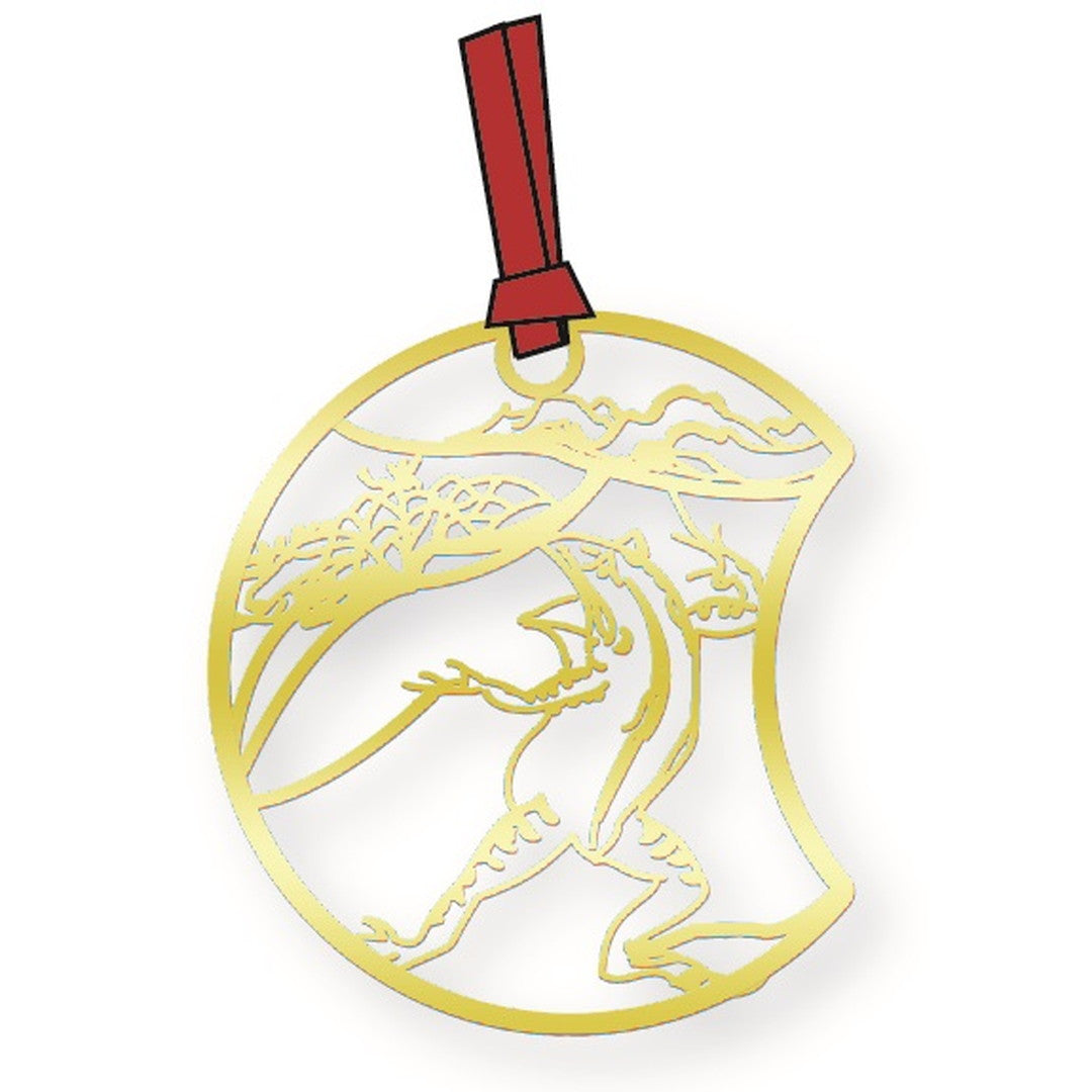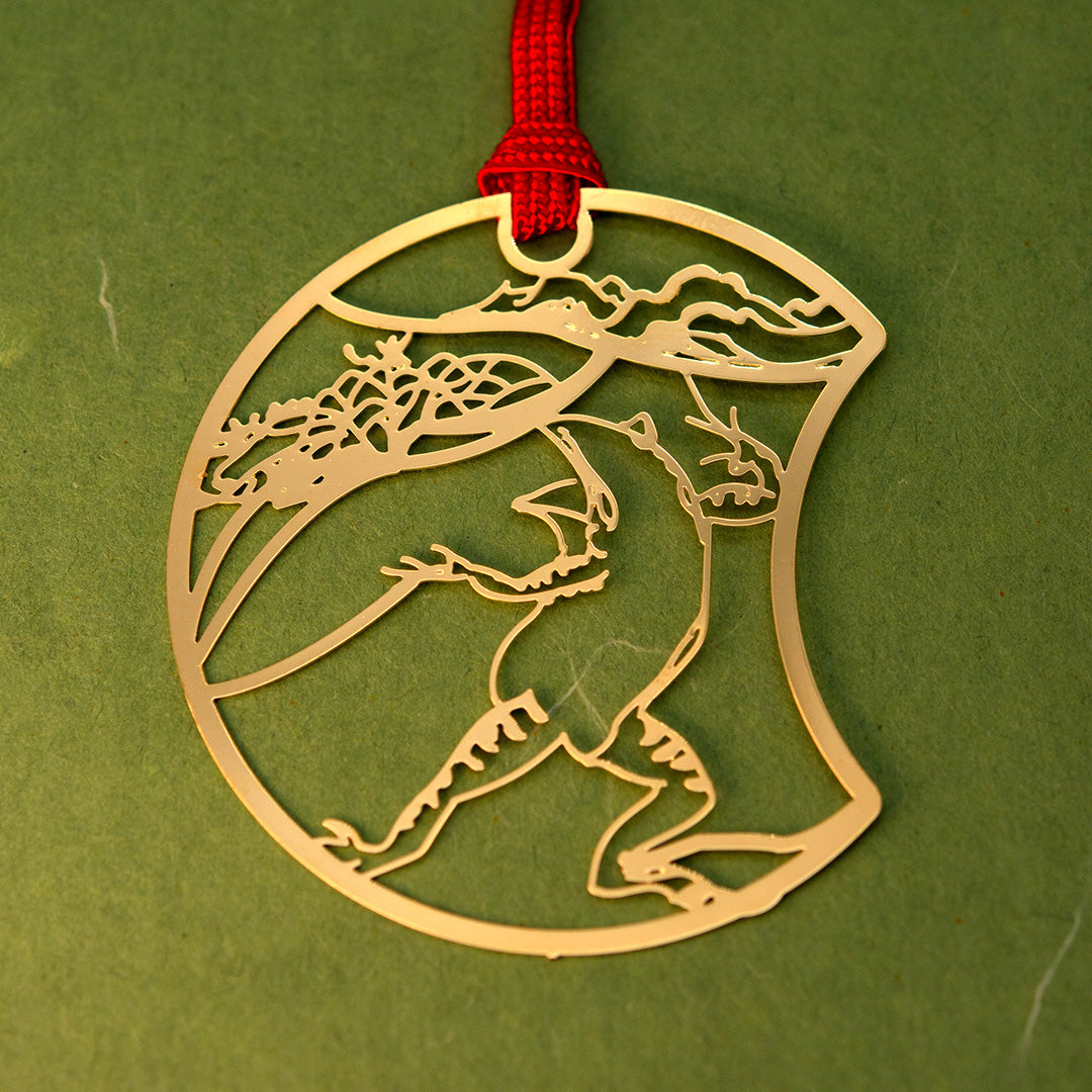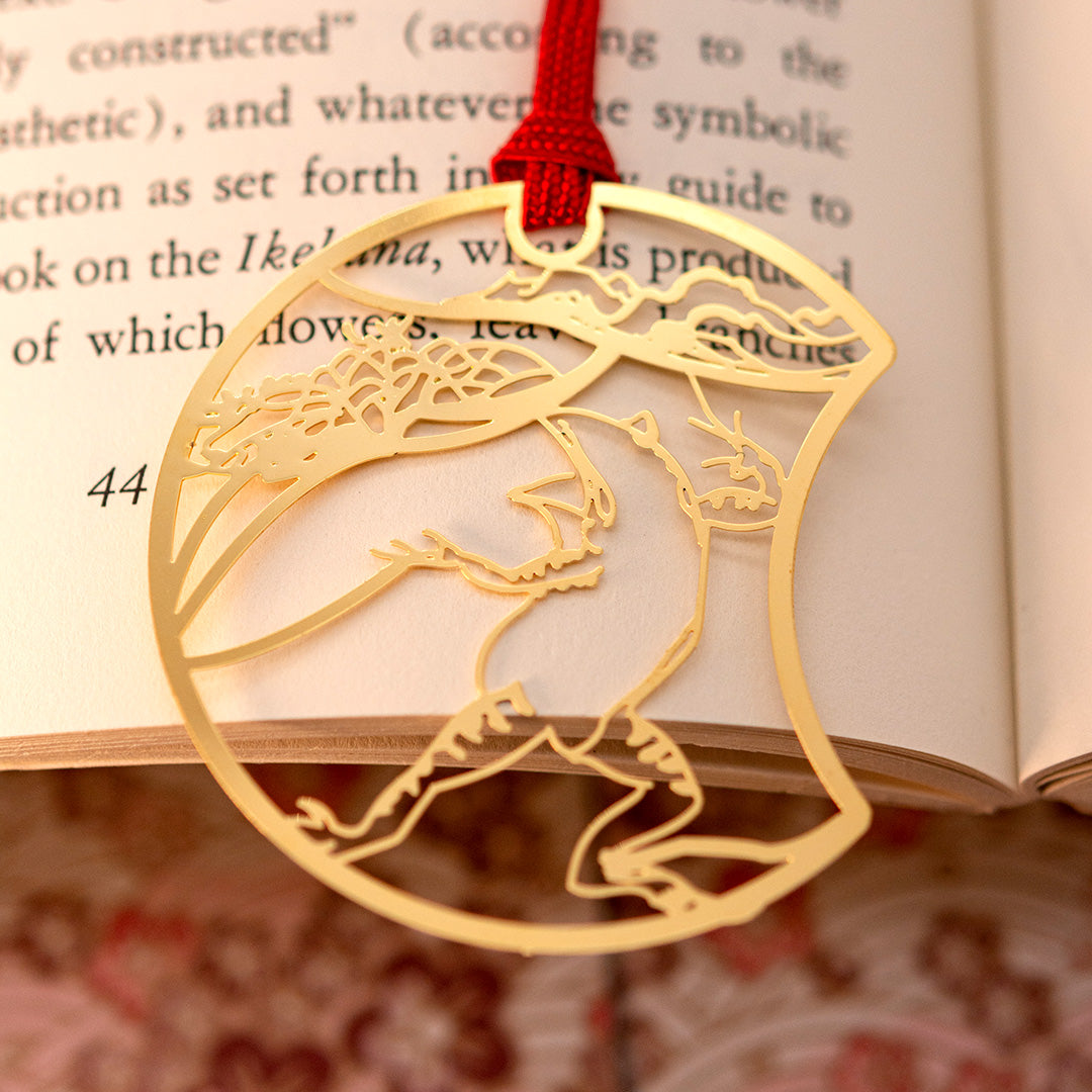栂尾山高山寺に伝わる紙本墨画の絵巻物の鳥獣戯画に登場する兎や蛙等のデザインを用いた金のしおりです。