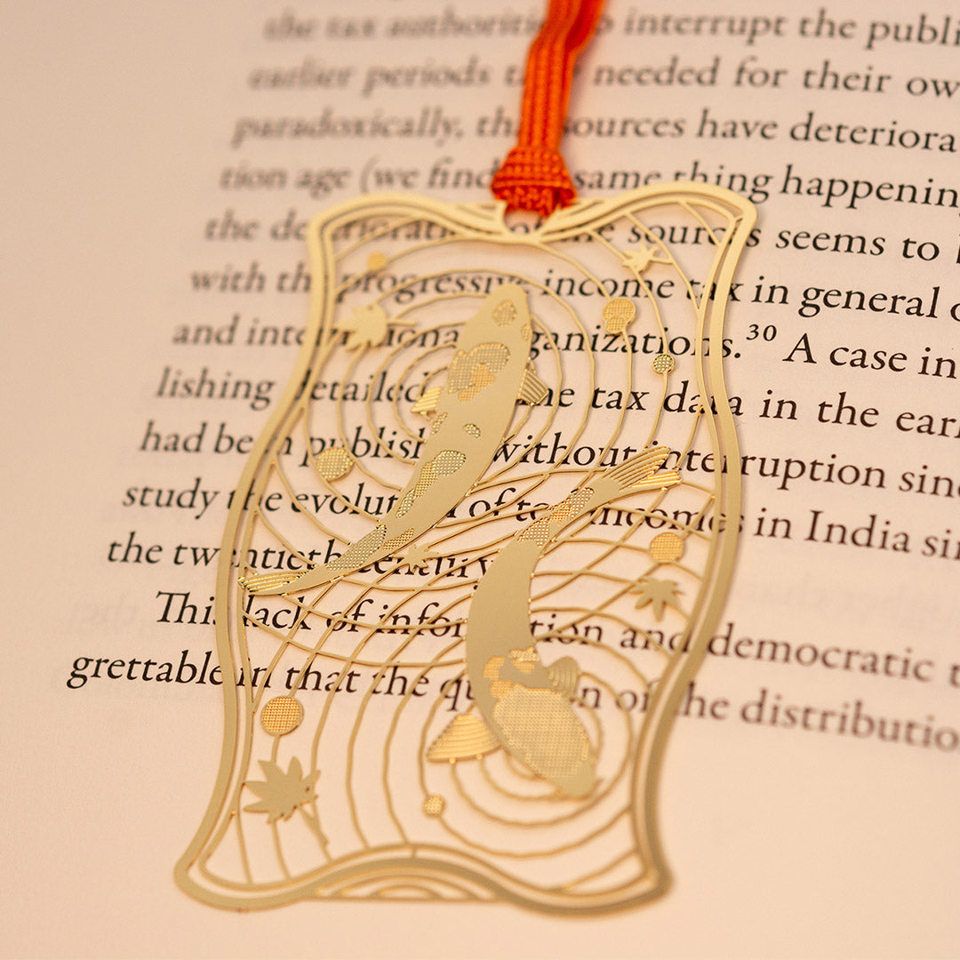 金色の輝きと繊細なデザインが美しいブックマークです。
