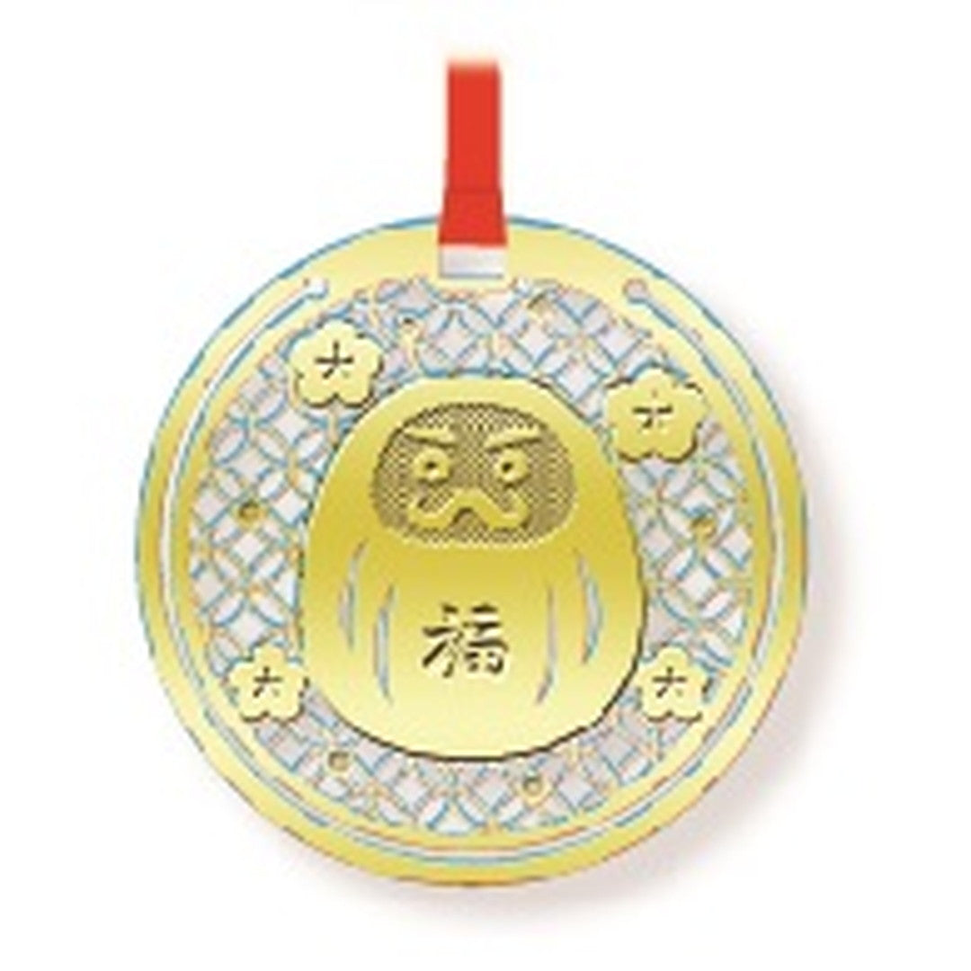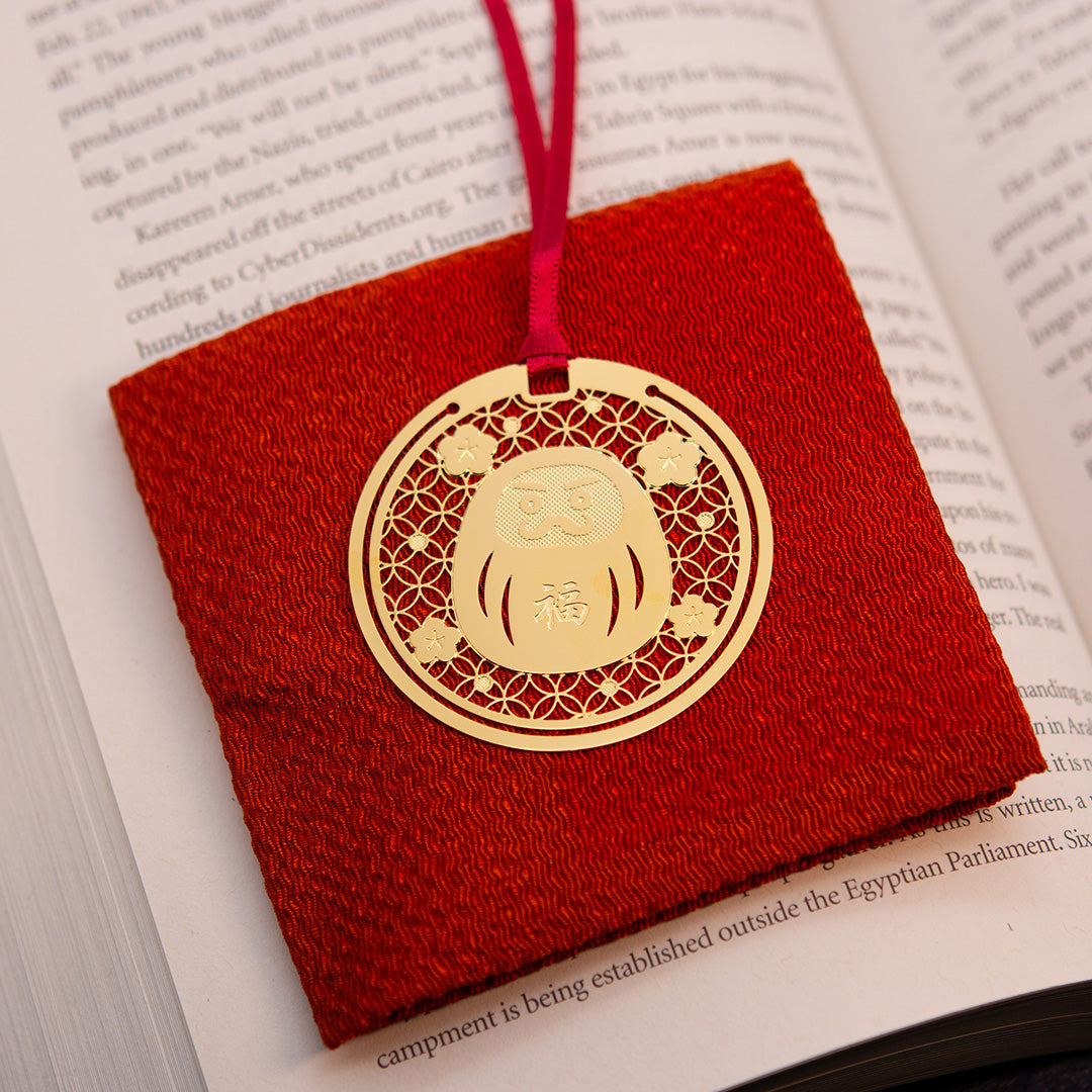 幸せを運ぶ縁起物をモチーフにしたしおりです。だるまは「必勝祈願・合格祈願」を意味します。
