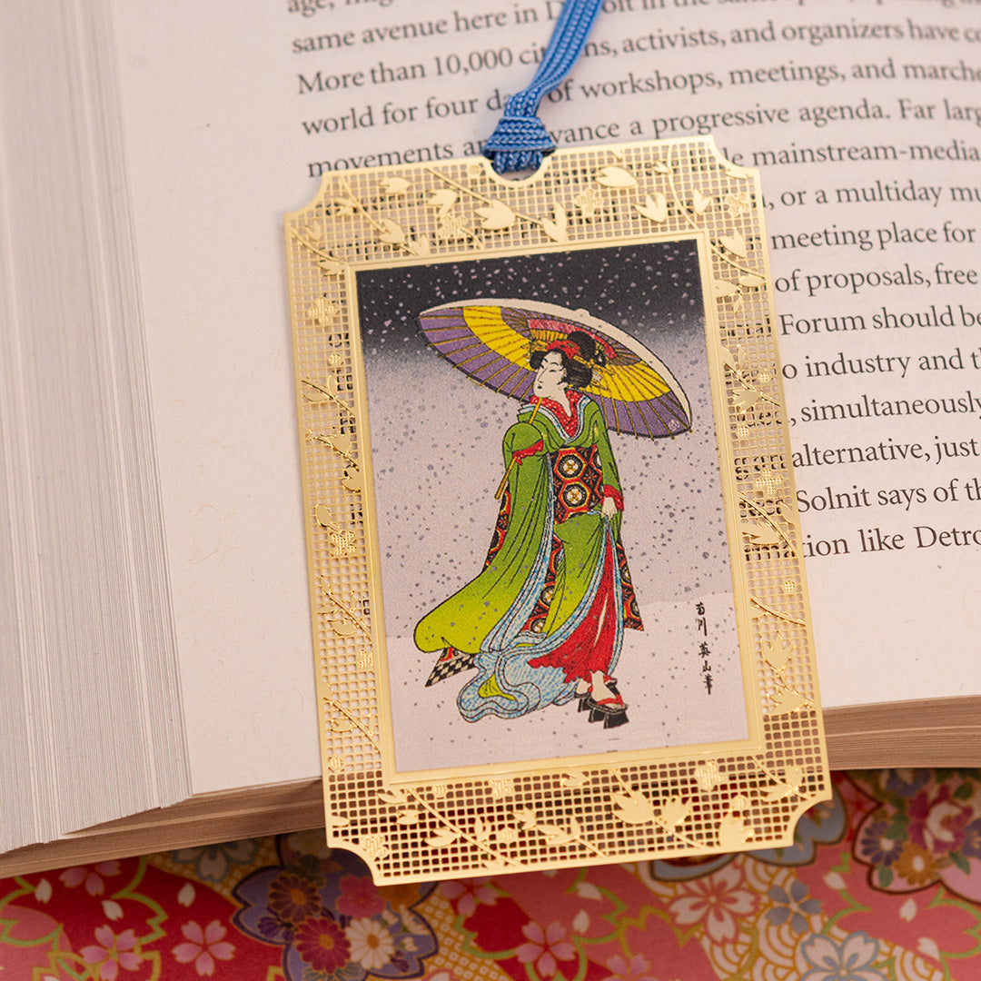浮世絵の名画を24kメッキプレートに印刷した高級感のあるしおりです。