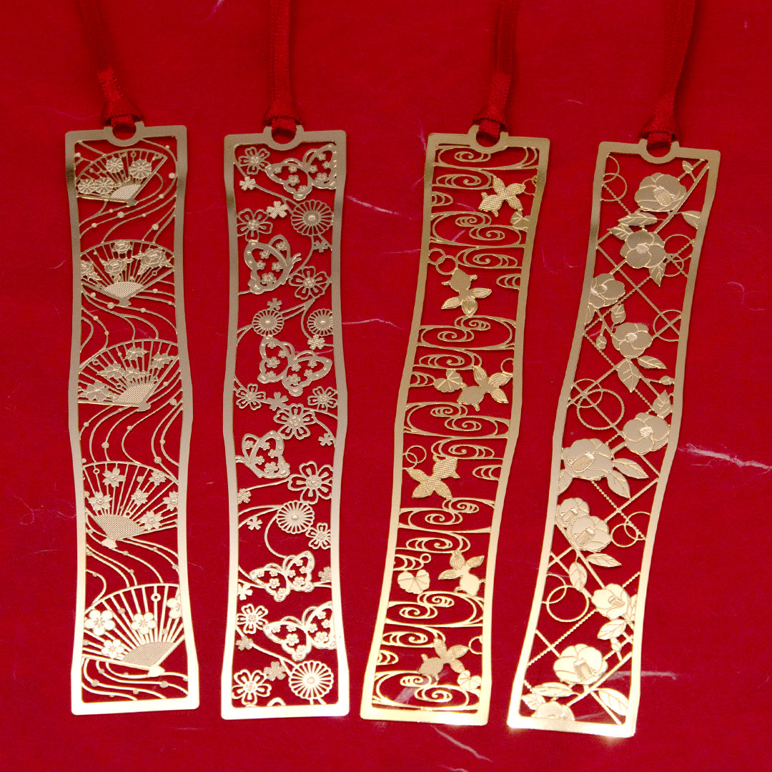 繊細なデザインとゴールドの色合いが美しい和風柄のしおりです。